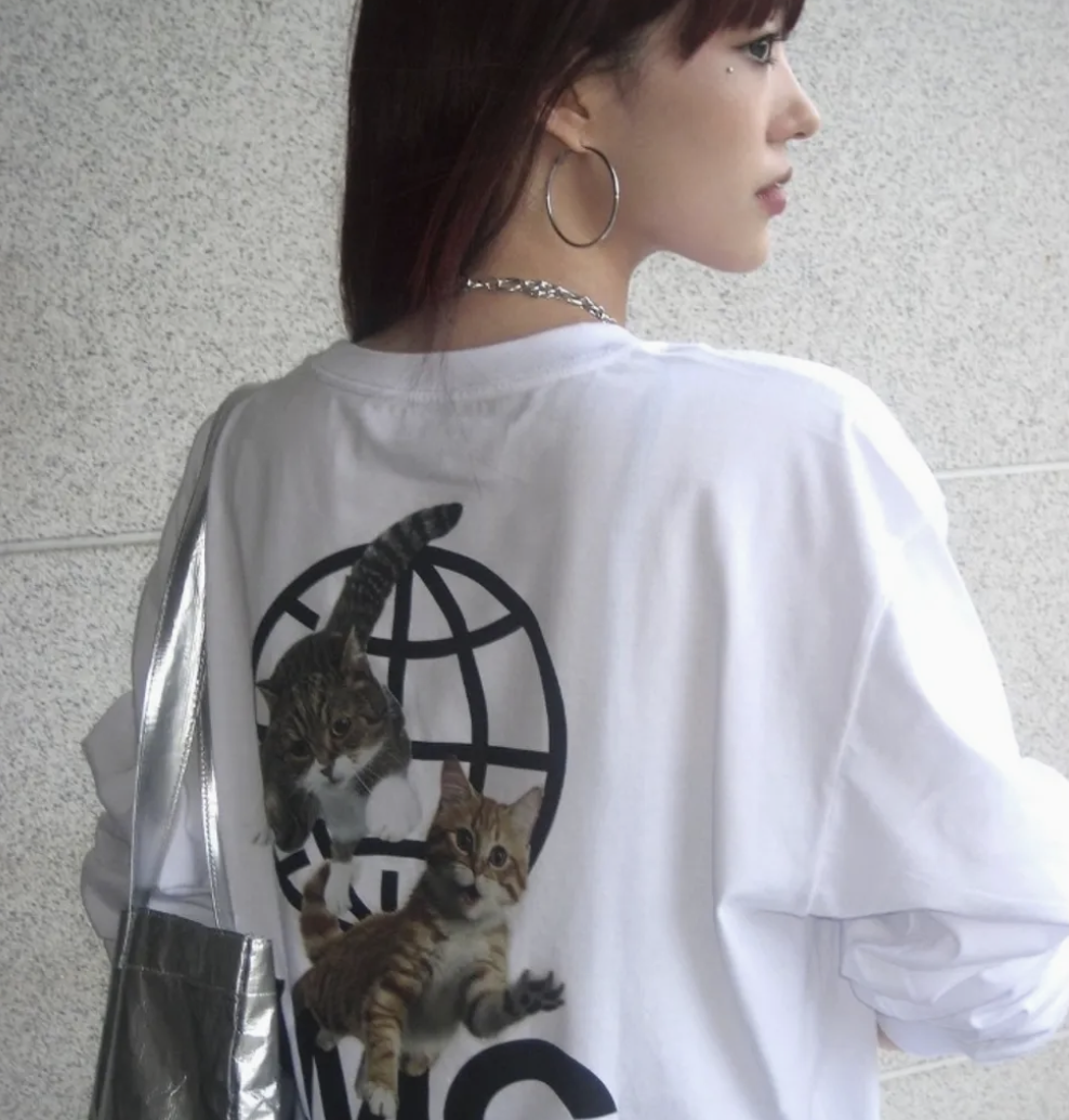200G/M SINGLE COTTON LMC FLYING CATS PRINT (cm) Small : Length 63, Shoulder 49.5, Chest 51, Sleeve 58 Medium : Length 68, Shoulder 51.5, Chest 55, Sleeve 62 Large : Length 70, Shoulder 52.5, Chest 57, Sleeve 64 XLarge : Length 72, Shoulder 54.5, Chest 60, Sleeve 66 Man : 175cm / Size : L Style Code : 0LM44FLS362BLK Material : Cotton 100% Manufacturer : LAYER. co., ltd. / Made in China