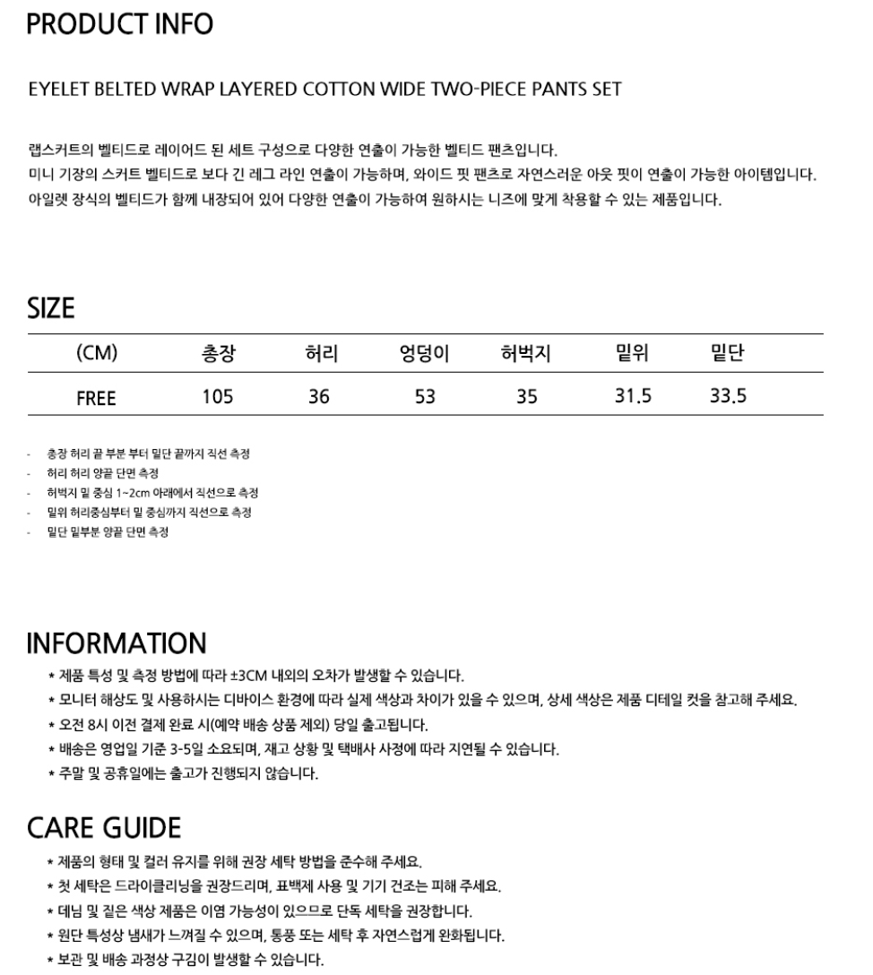 ๐ฐ๐ท่จ่ณผ๏ฝ PLACE STUDIO 26SS๏ฝEyelet Belted Wrap Layered Two-Piece Pants
