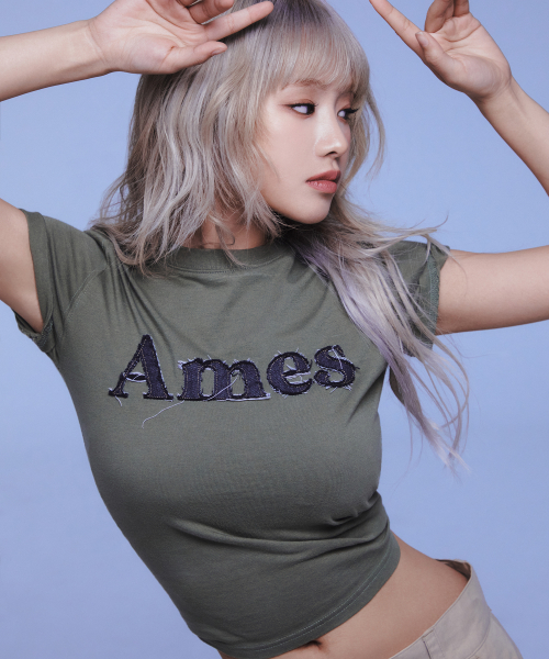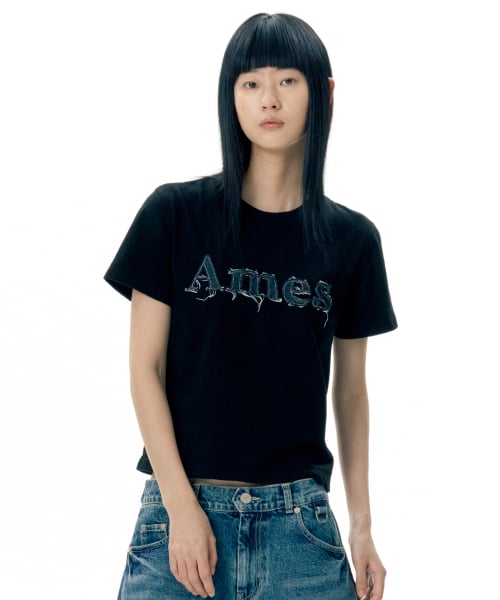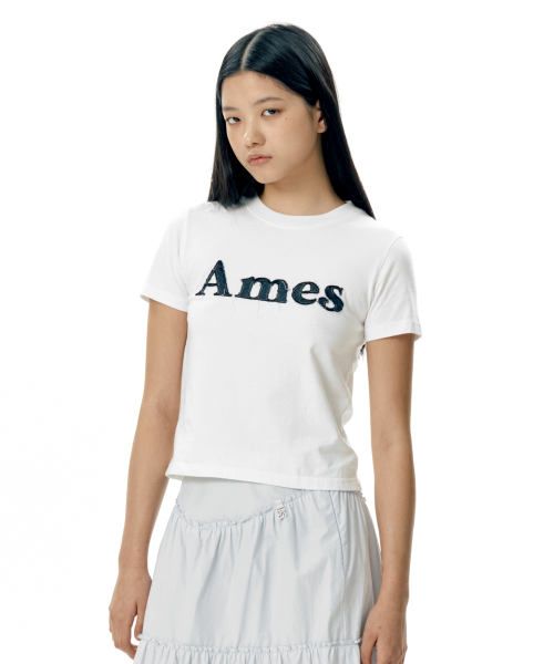 ๐ฐ๐ท่จ่ณผ๏ฝAMES๏ฝBASIC LOGO DENIM APPLIQUE TEE 3่ฒ