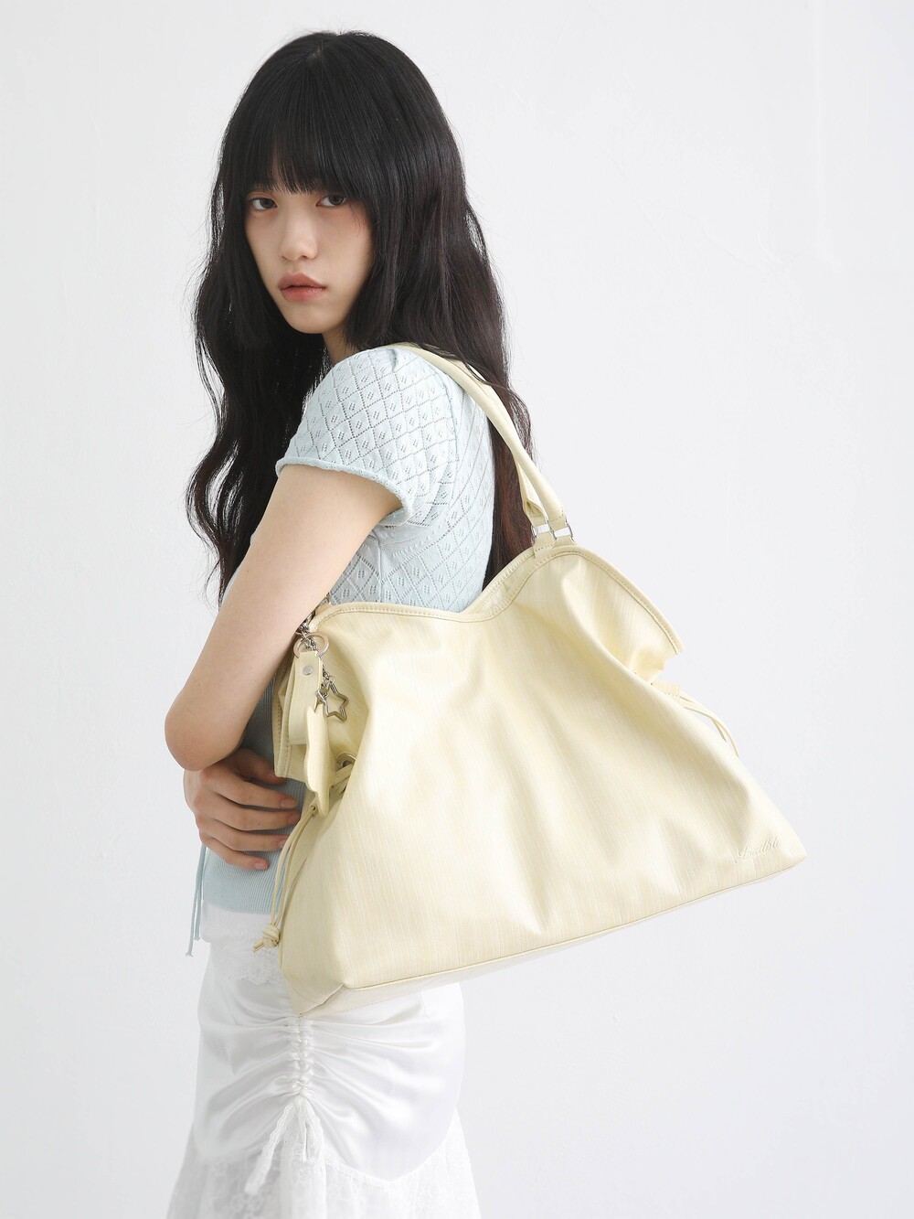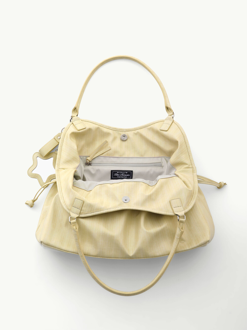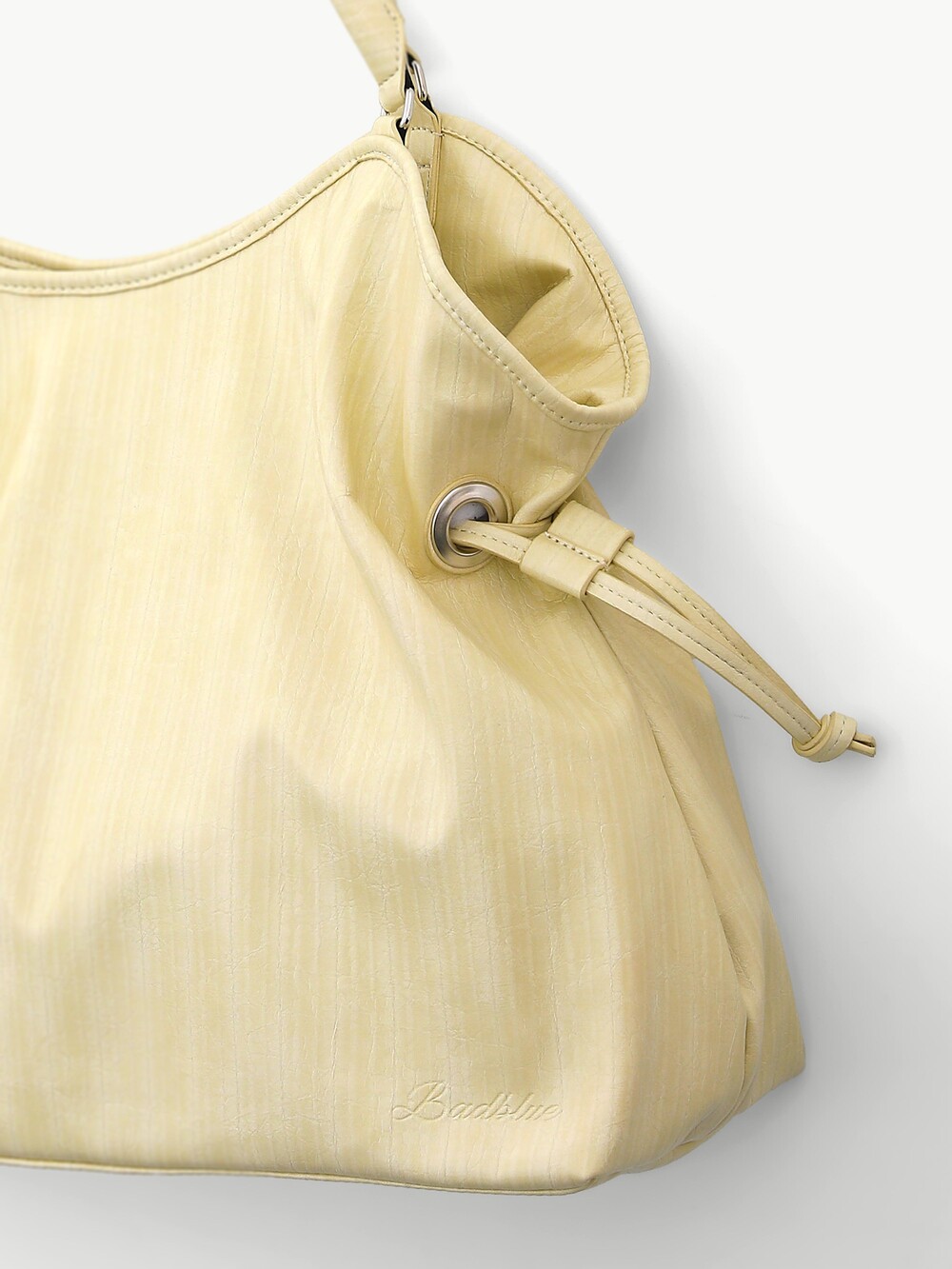 Crafted from glazed vegan leather in a soft vanilla tone with a hint of lemon.