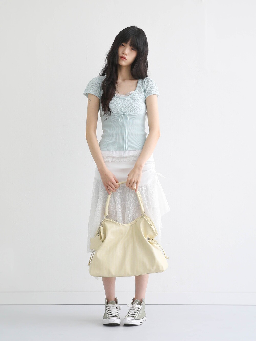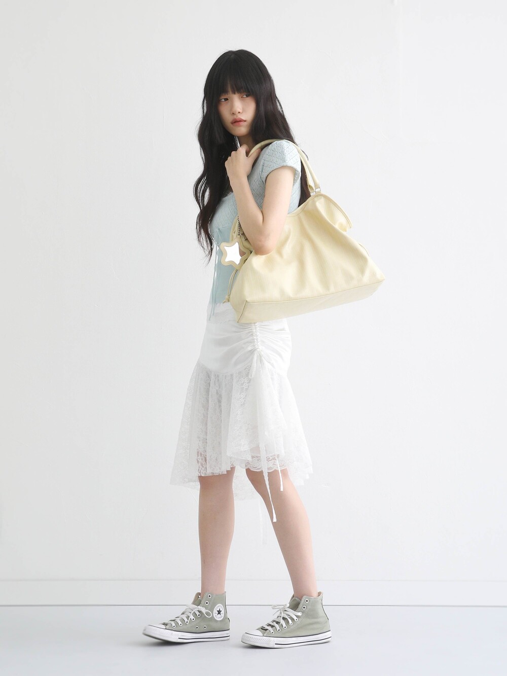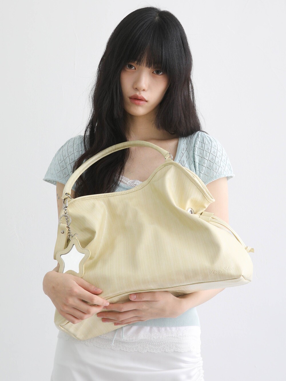 Crafted from glazed vegan leather in a soft vanilla tone with a hint of lemon.