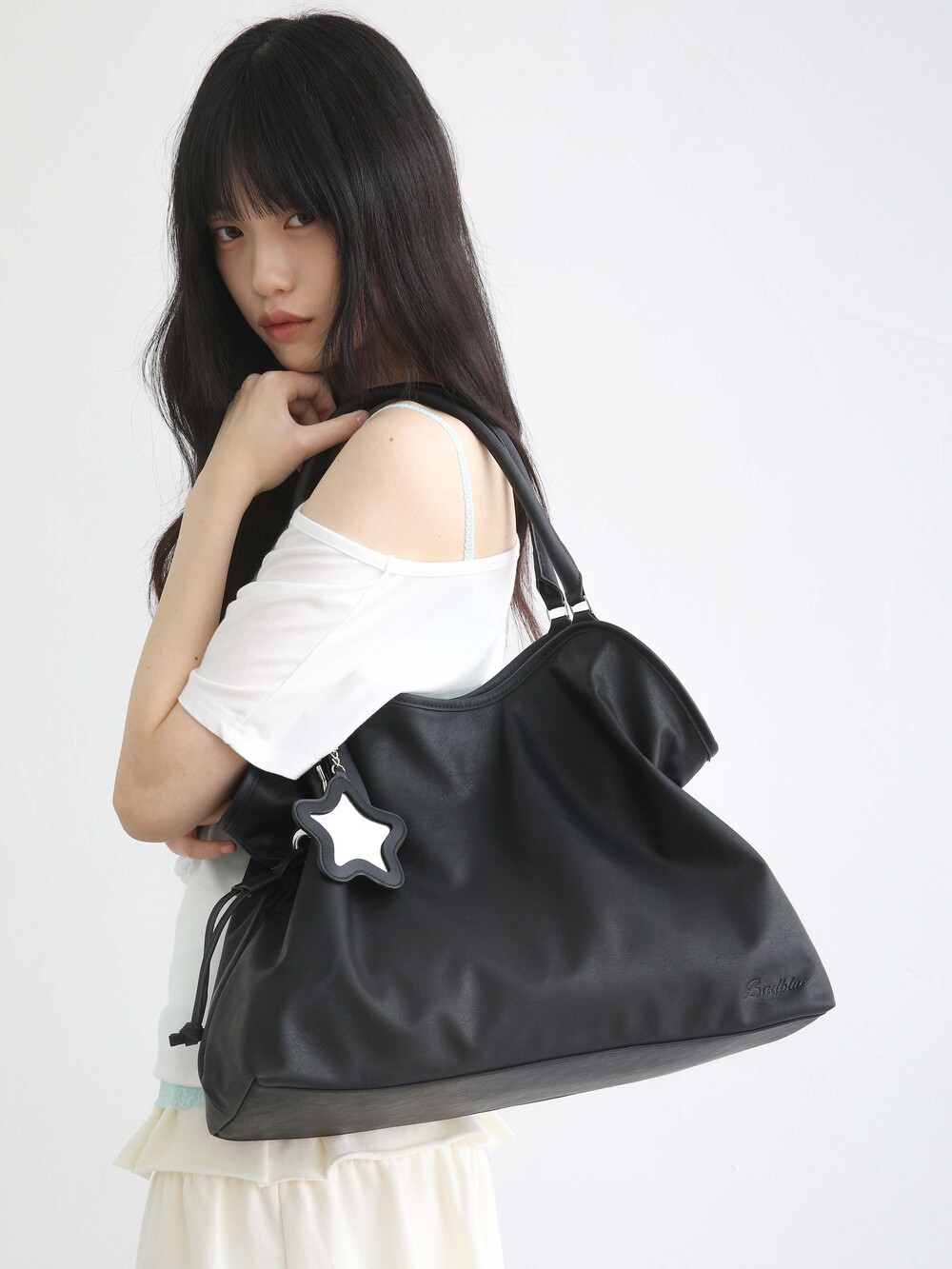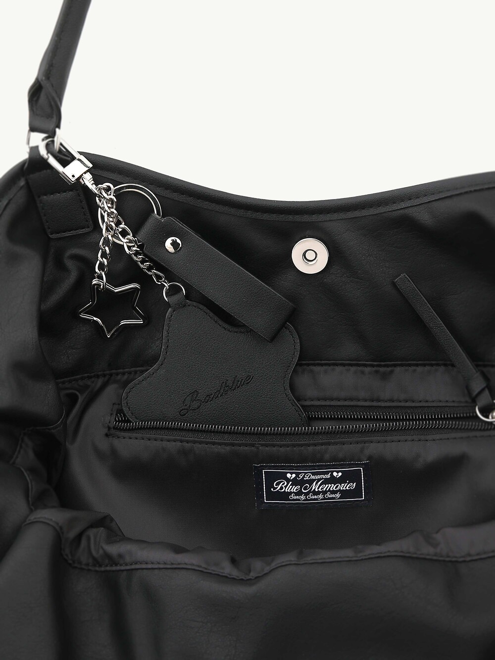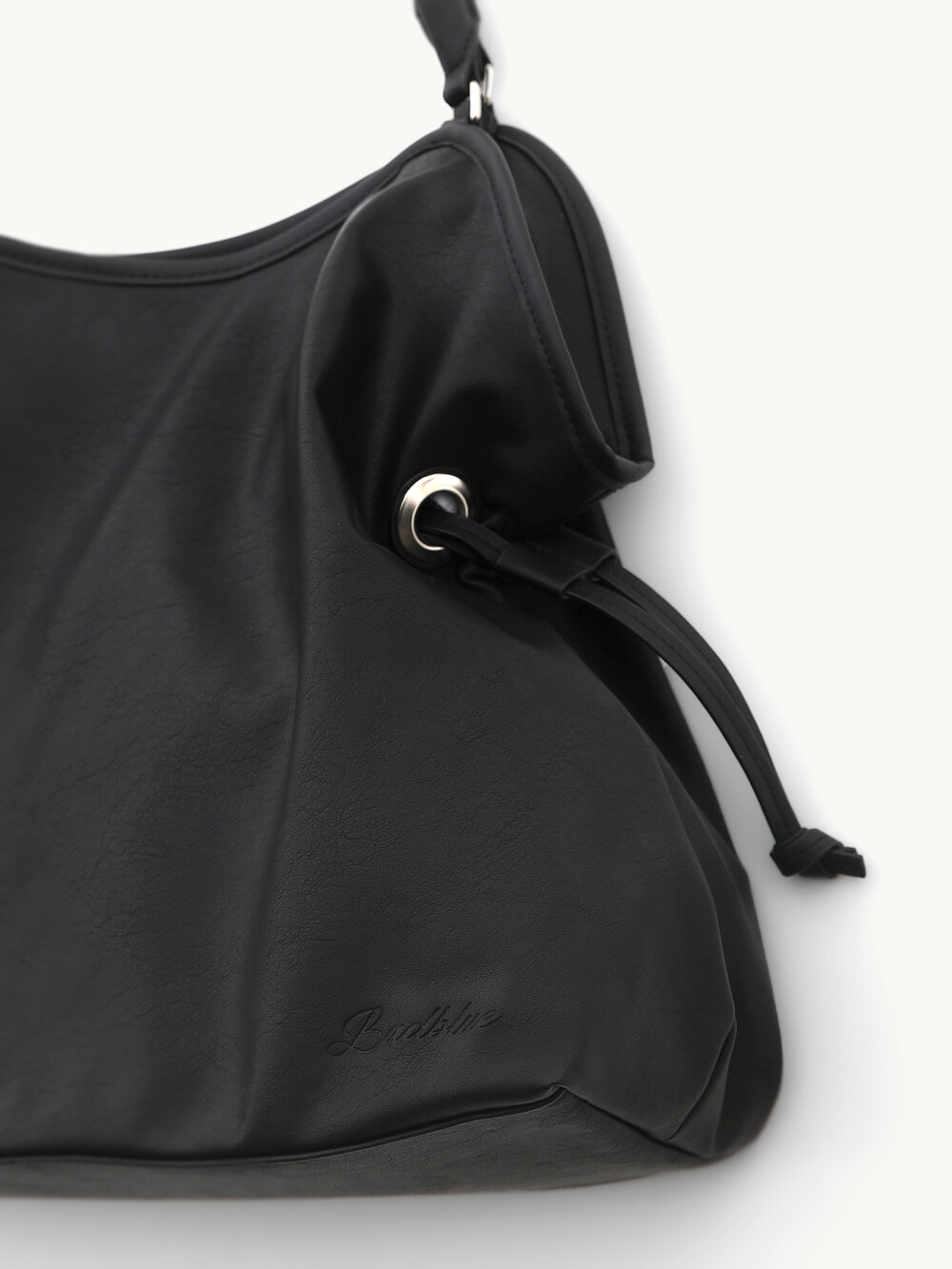 Crafted from vegan leather in a deep black tone with a subtle calfskin-like texture.