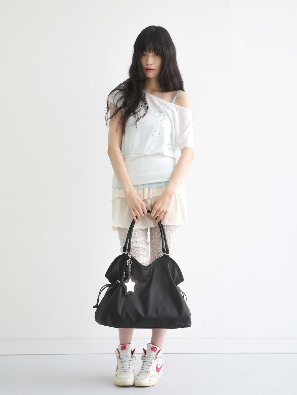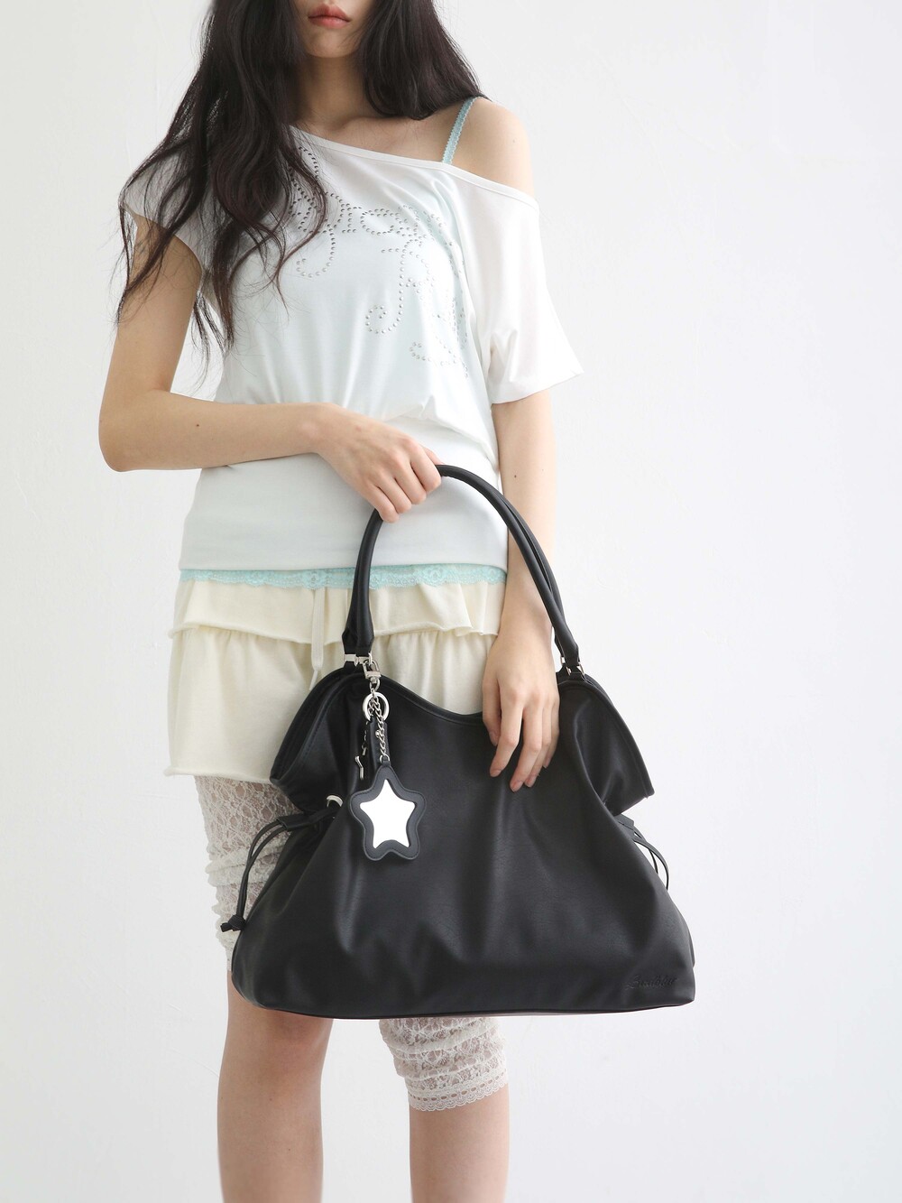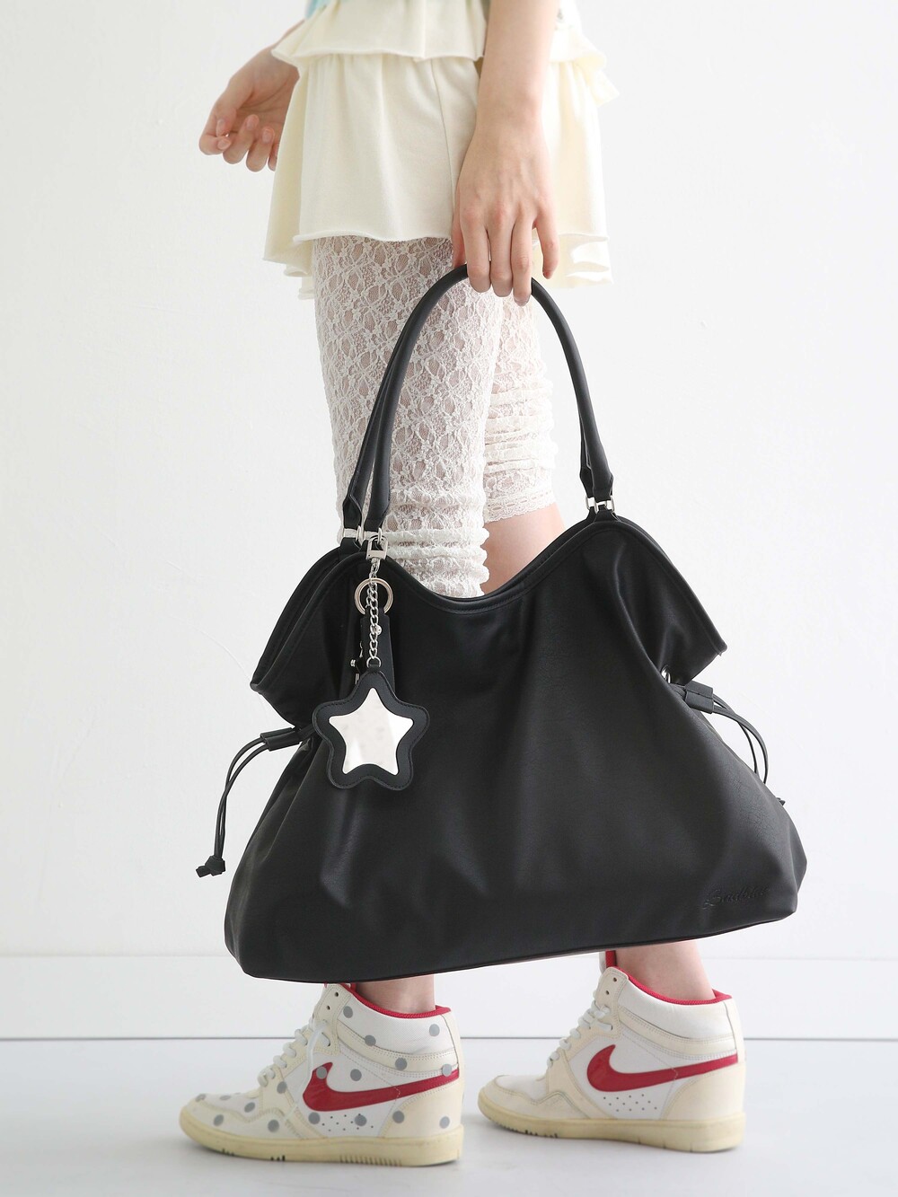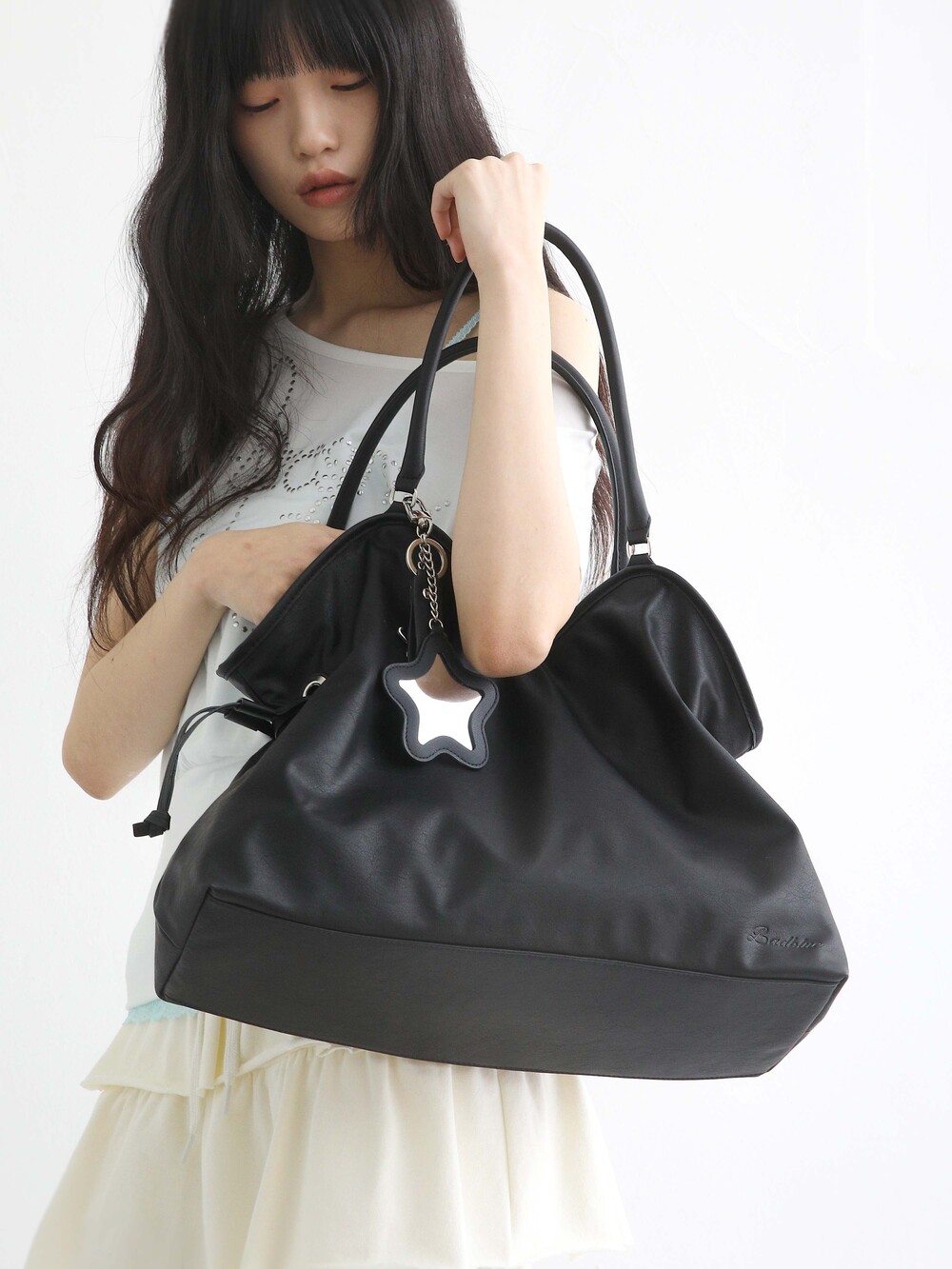 Crafted from vegan leather in a deep black tone with a subtle calfskin-like texture.