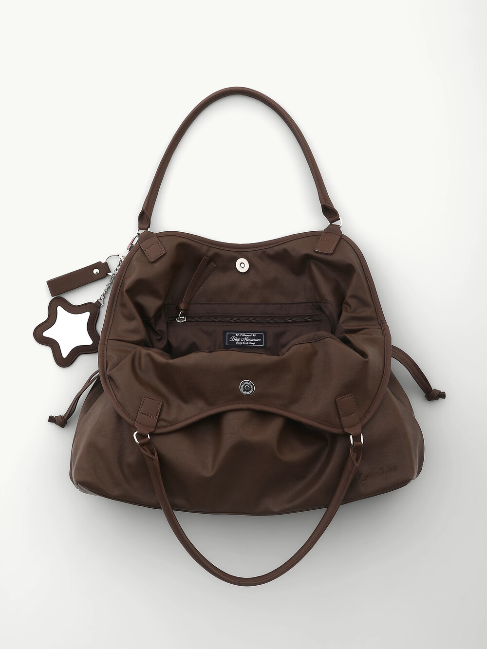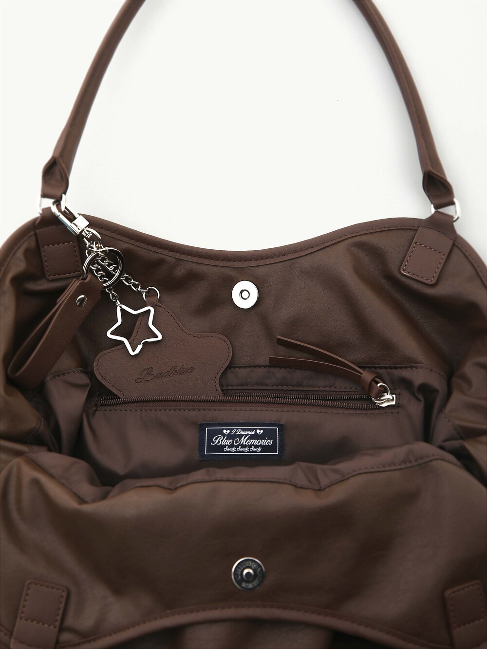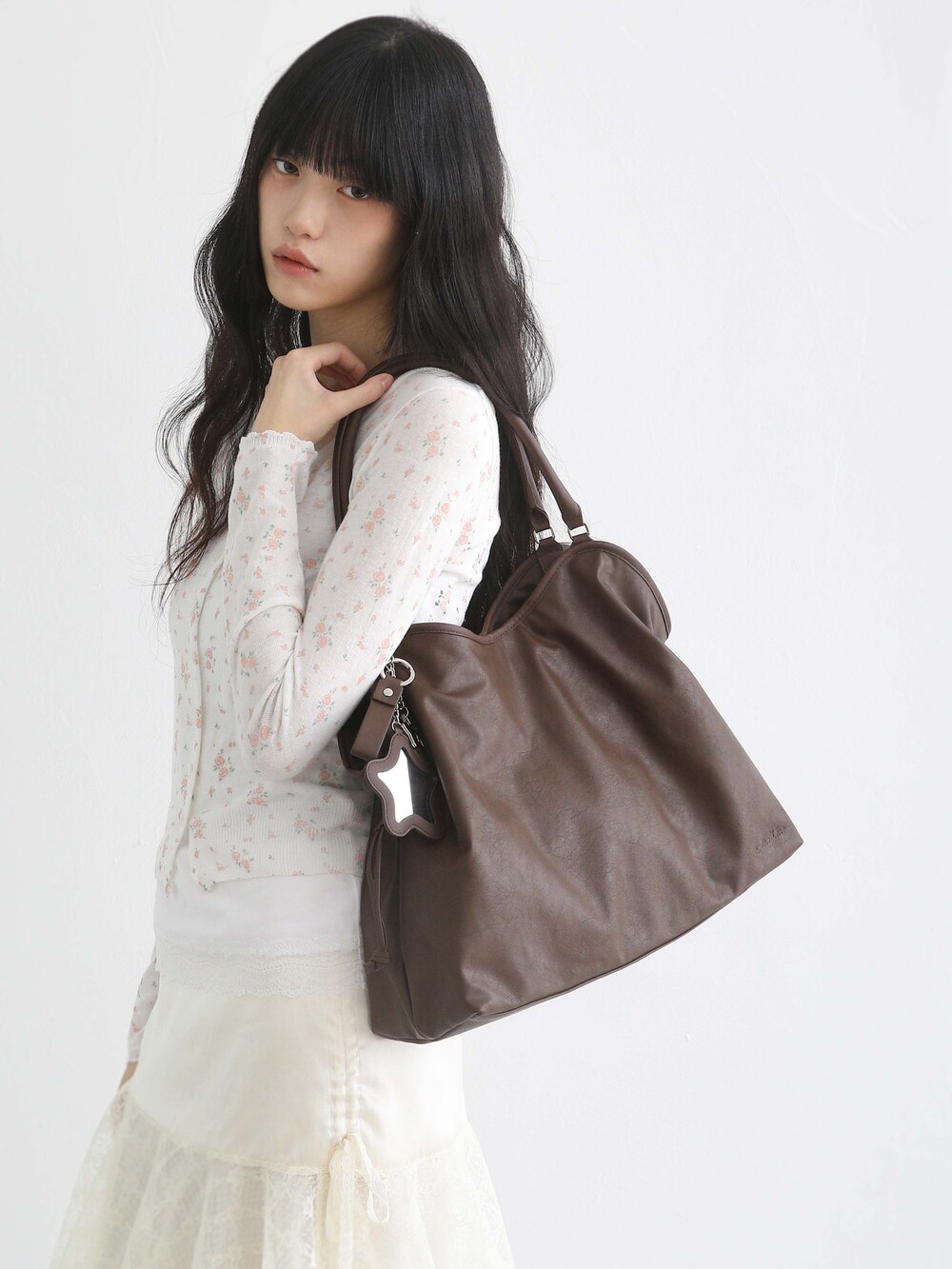 Crafted from vegan leather in a mellow mocha tone with a subtle calfskin-like texture.