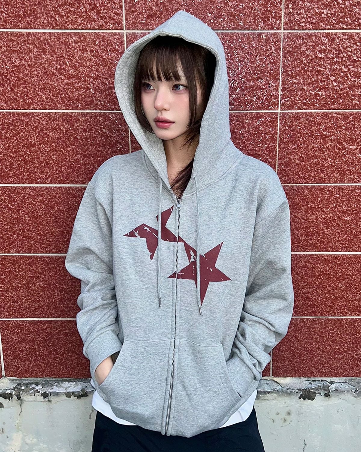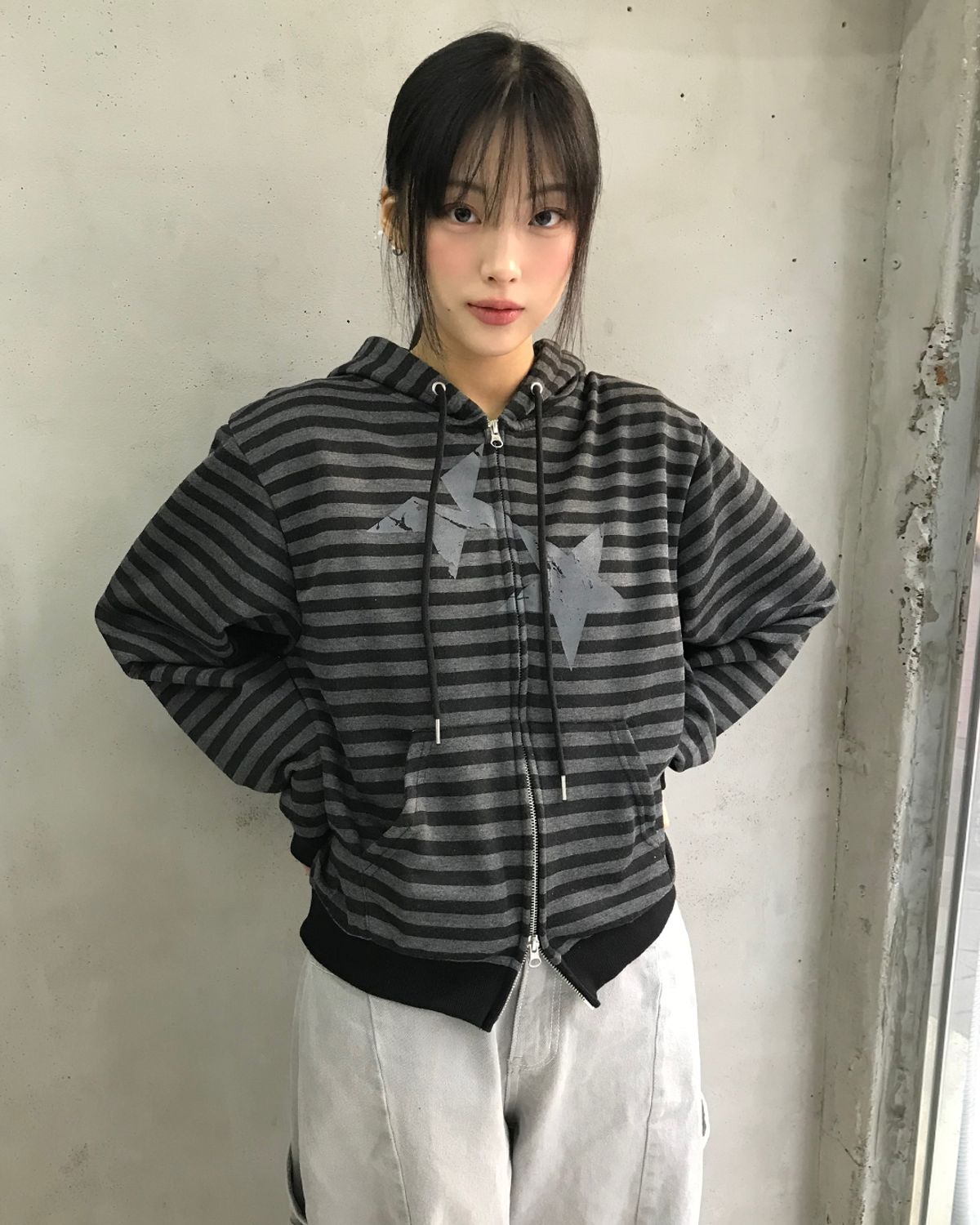 ๐ฐ๐ท่จ่ณผ๏ฝCAVISH๏ฝSTRIPED TWIN STAR ZIP UP HOODIE 4่ฒ