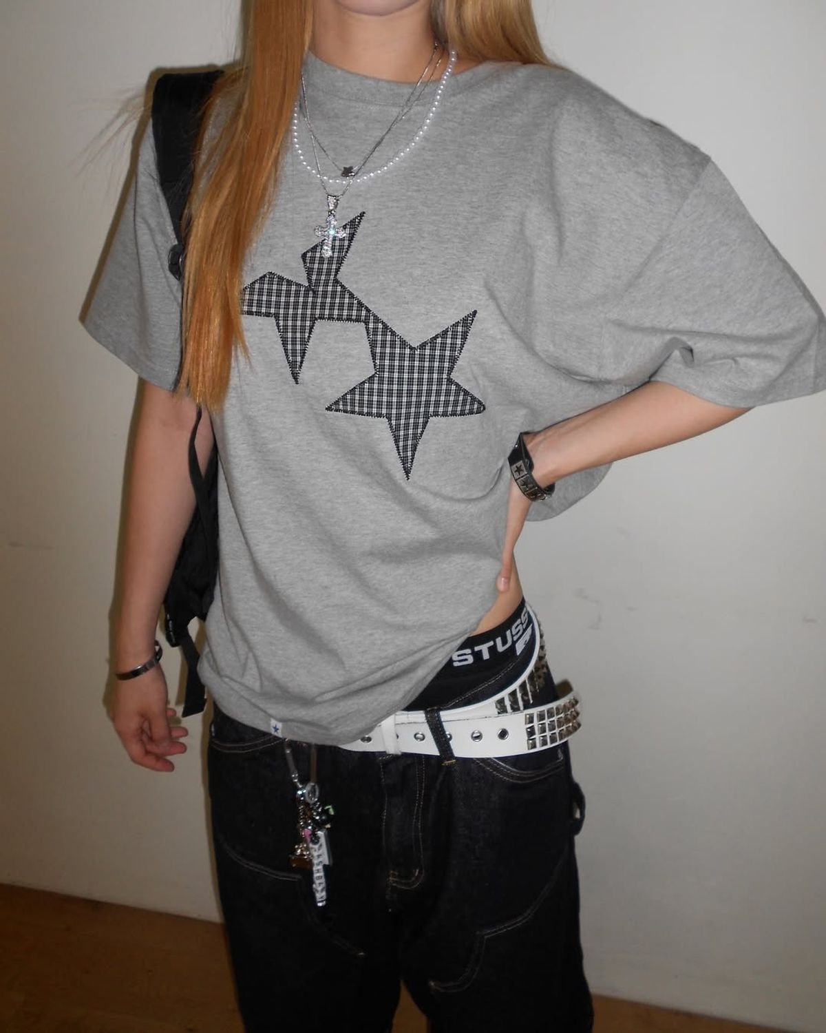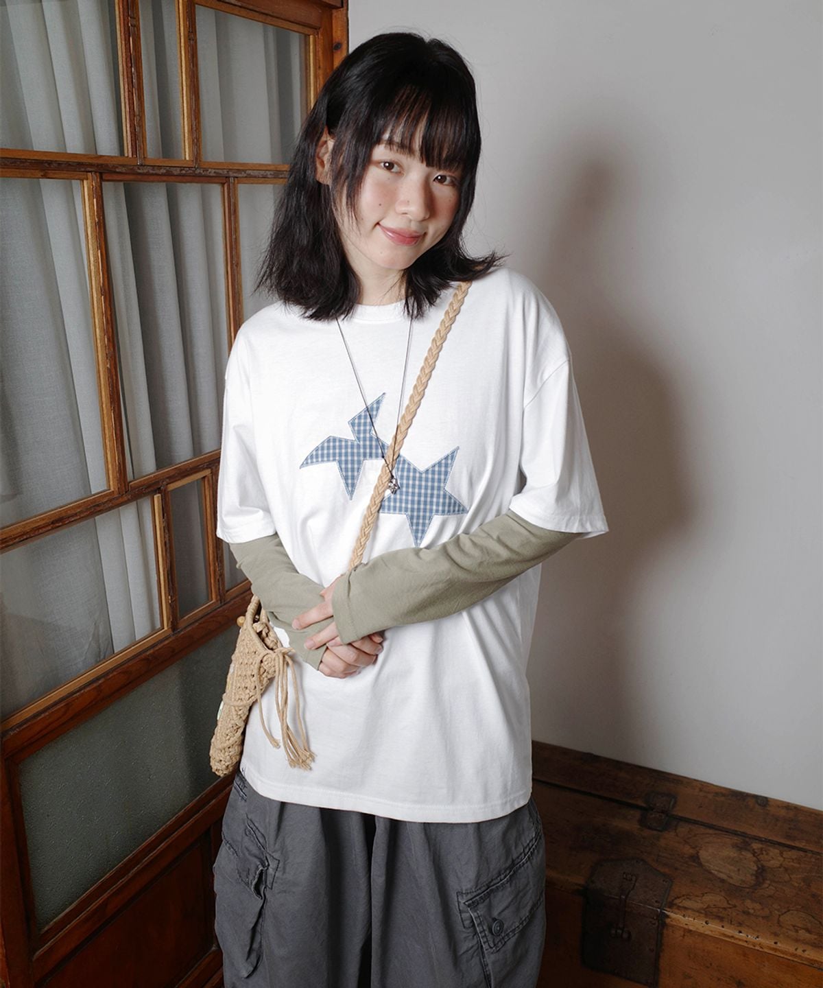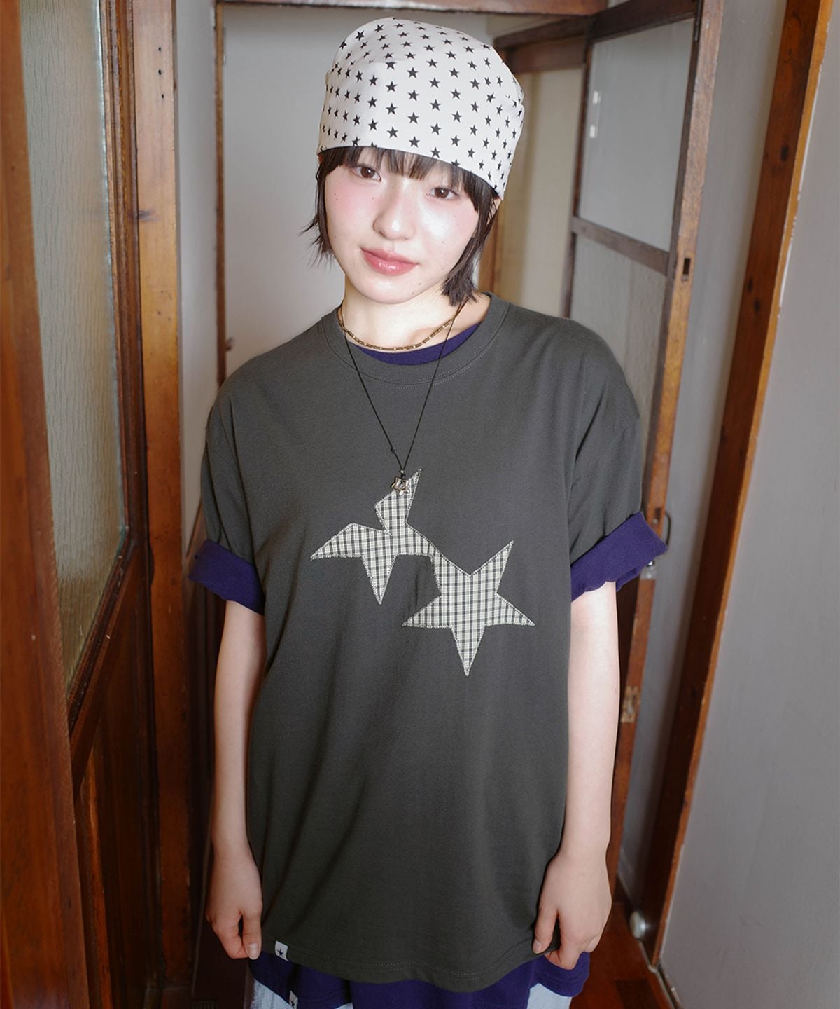 ๐ฐ๐ท่จ่ณผ๏ฝCAVISH๏ฝTWIN STAR CHECK APPLIQUE SS TEE 3่ฒ
