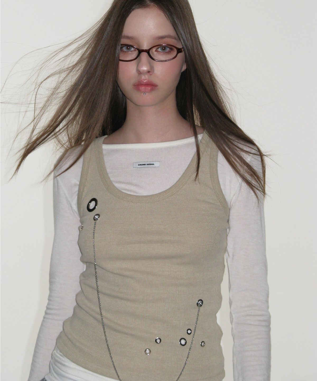 ๐ฐ๐ท่จ่ณผ๏ฝCRANK๏ฝ EYELET CHAIN SLEEVELESS 2่ฒ