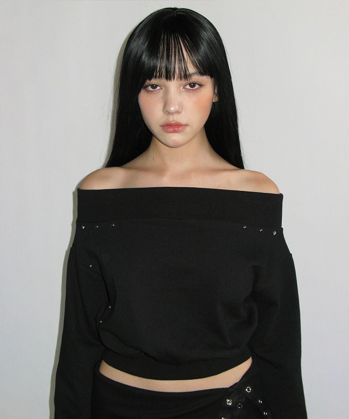 ๐ฐ๐ท่จ่ณผ๏ฝCRANK๏ฝSTUDDED OFF-SHOULDER SWEATSHIRT 2่ฒ
