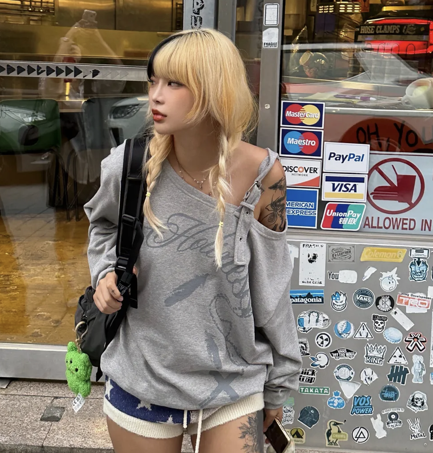 ๐ฐ๐ท่จ่ณผ๏ฝFANCY CLUB๏ฝONE-SHOULDER BUCKLE SWEATSHIRT 2่ฒ