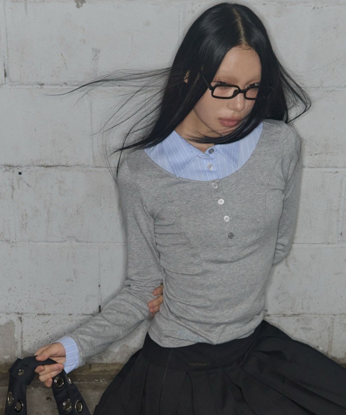 ๐ฐ๐ท่จ่ณผ๏ฝFANCY CLUB 25FW๏ฝSHIRT LAYERED LONG SLEEVE 3่ฒ