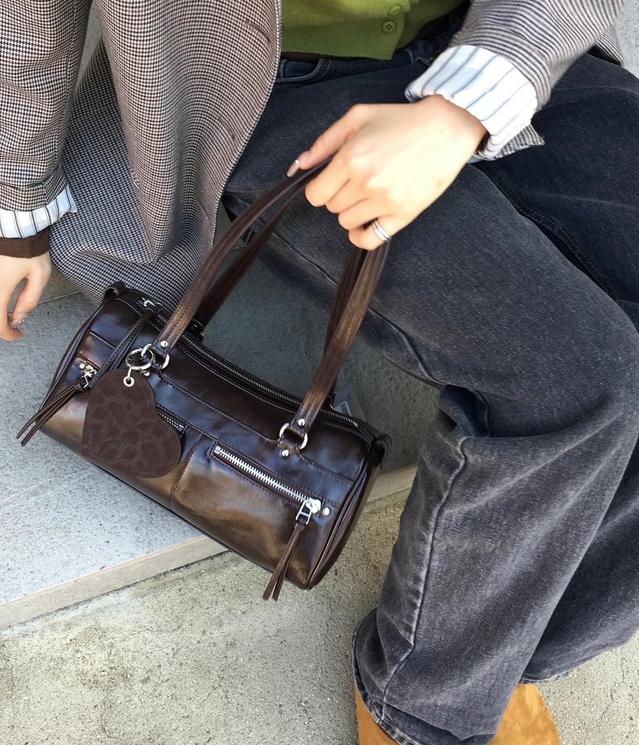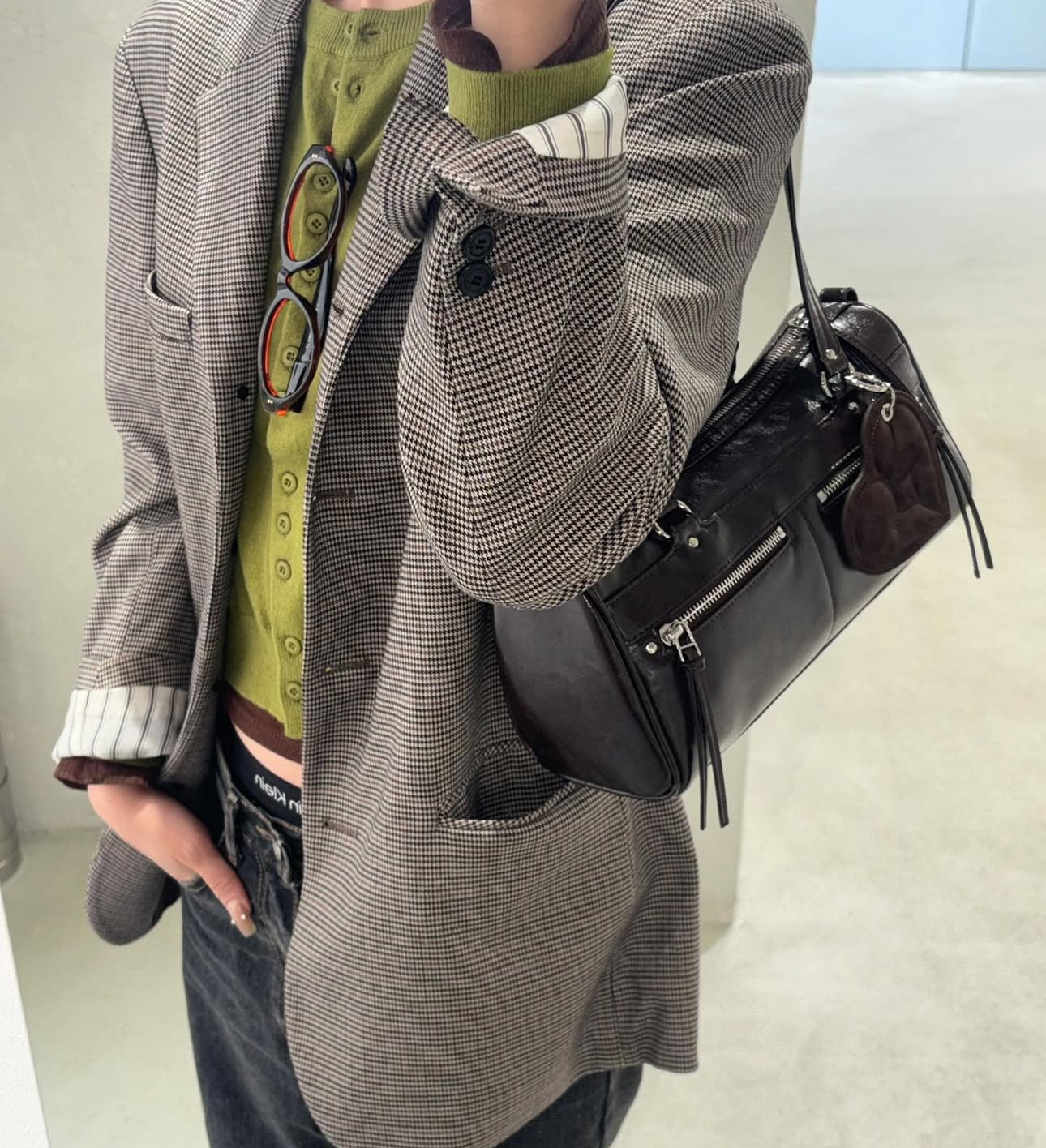 這款旅行單肩包設計大膽前衛,附有拉鍊口袋。