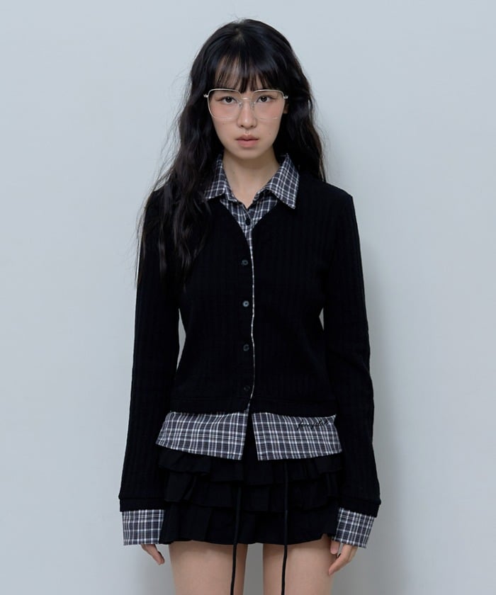 ๐ฐ๐ท่จ่ณผ๏ฝNASTY FANCY CLUB 24FW๏ฝCHECK SHIRT LAYERED CARDIGAN