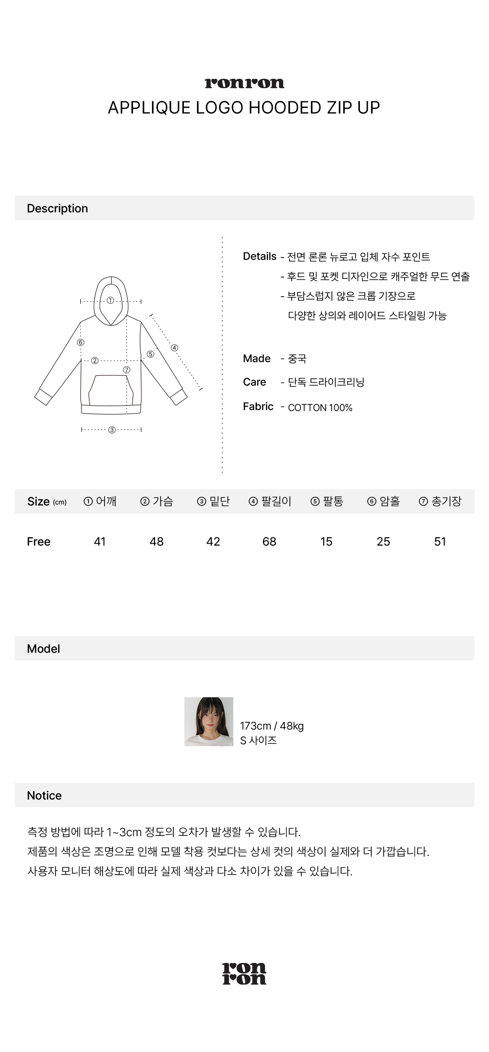 ๐ฐ๐ท่จ่ณผ๏ฝRONRON๏ฝAPPLIQUE LOGO HOODED ZIP UP 2่ฒ