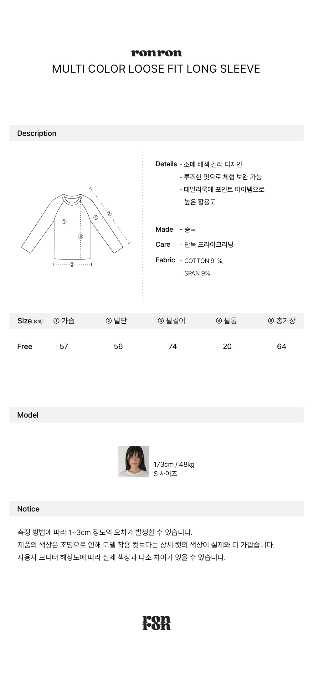 ๐ฐ๐ท่จ่ณผ๏ฝRONRON๏ฝMULTI COLOR LOOSE FIT LONG SLEEVE