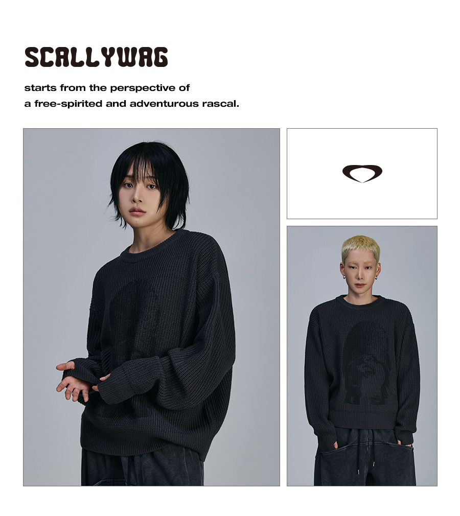 ๐ฐ๐ท่จ่ณผ๏ฝSCALLYWAG 25FW๏ฝPrinted Fingerhole Ribbed Knit 2่ฒ
