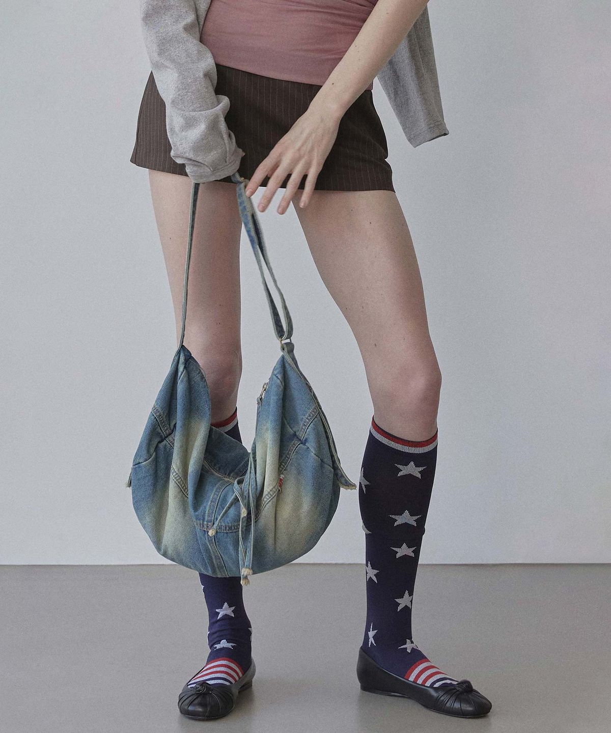 [INFORMATION] MATERIAL : COTTON 88% POLYESTER 12% MANUFACTURE : SCULPTOR / CHINA [SIZE GUIDE] Width : 46 / Length : 21 / Depth : 21 / Strap : 84 *There may be 1-2cm difference depending on the measurement location and individual. (Unit : cm) Long haired female Model"s Height 176 / Bust 32 / Waist 23 / Hip 35 Short haired female Model"s Height 175 / Bust 31 / Waist 24 / Hip 35 *Female Model Fitting Size : F [LAUNDRY TIP] Please refrain from washing and dry cleaning as it may cause shrinkage and distortion of the product. If necessary, wipe off the dirt with a damp cloth. Please refer to the laundry label for details.