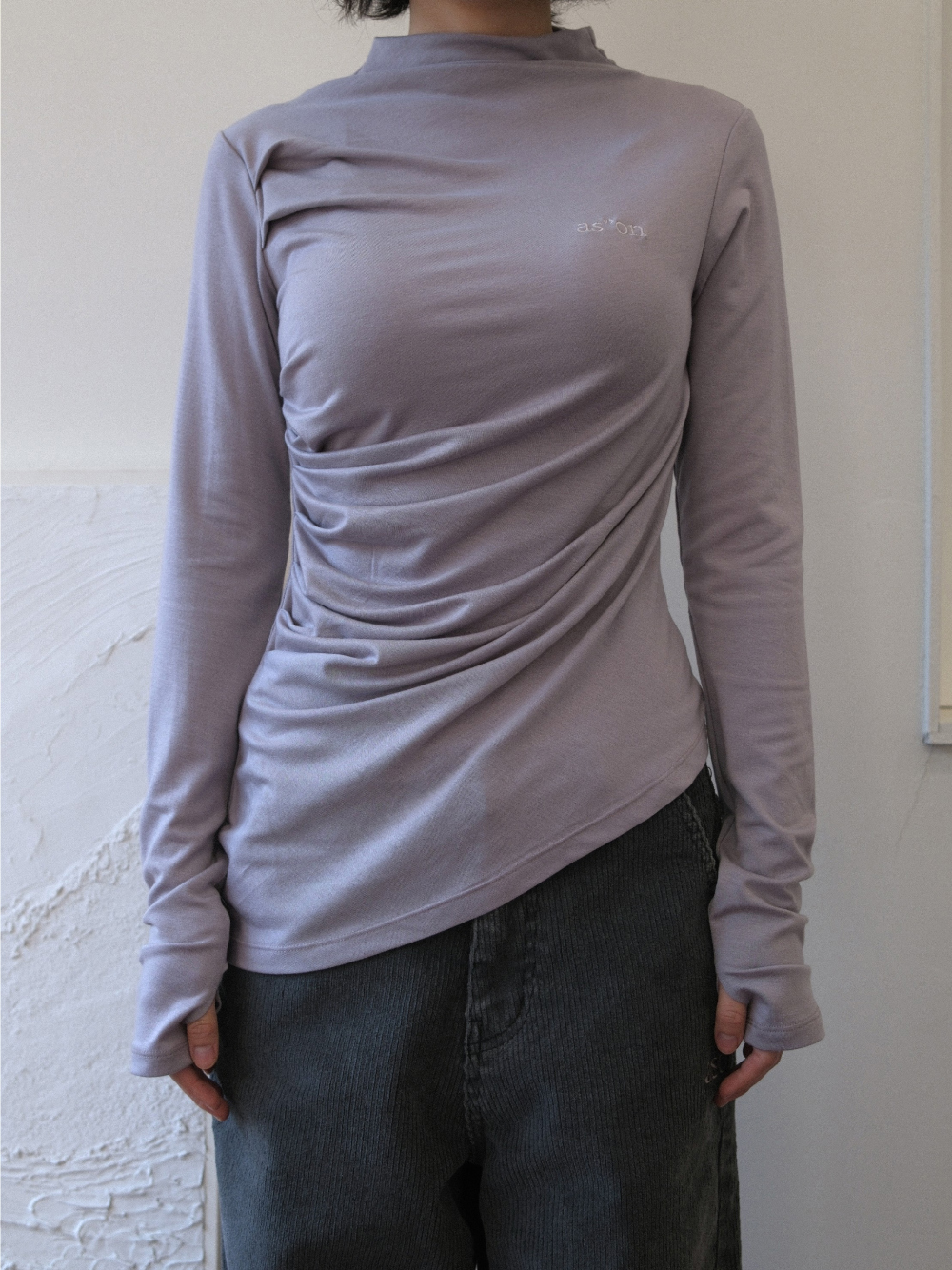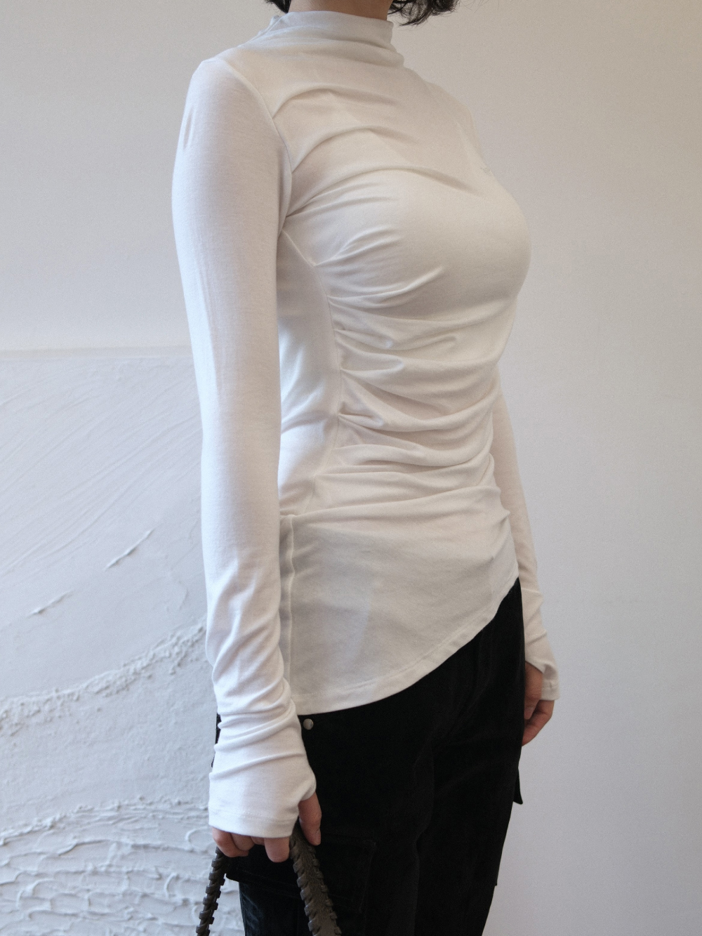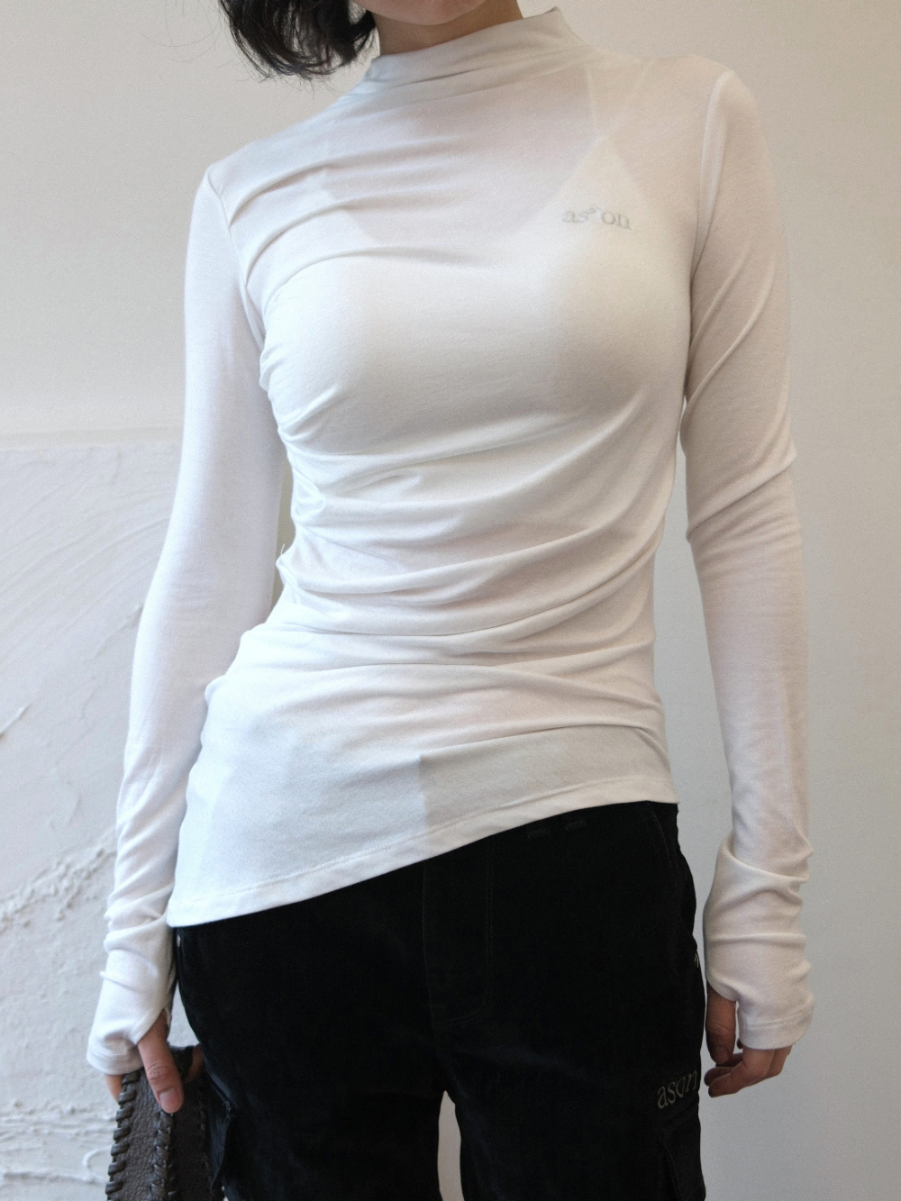 - 高領設計,下擺不規則