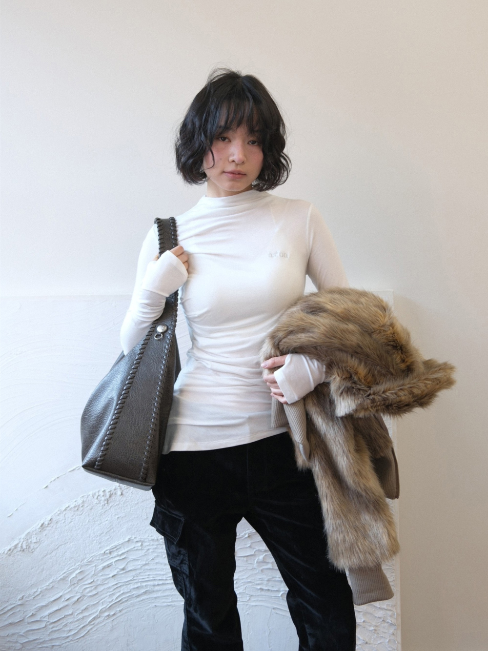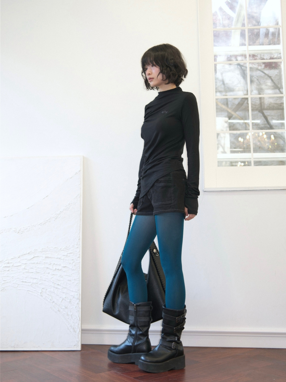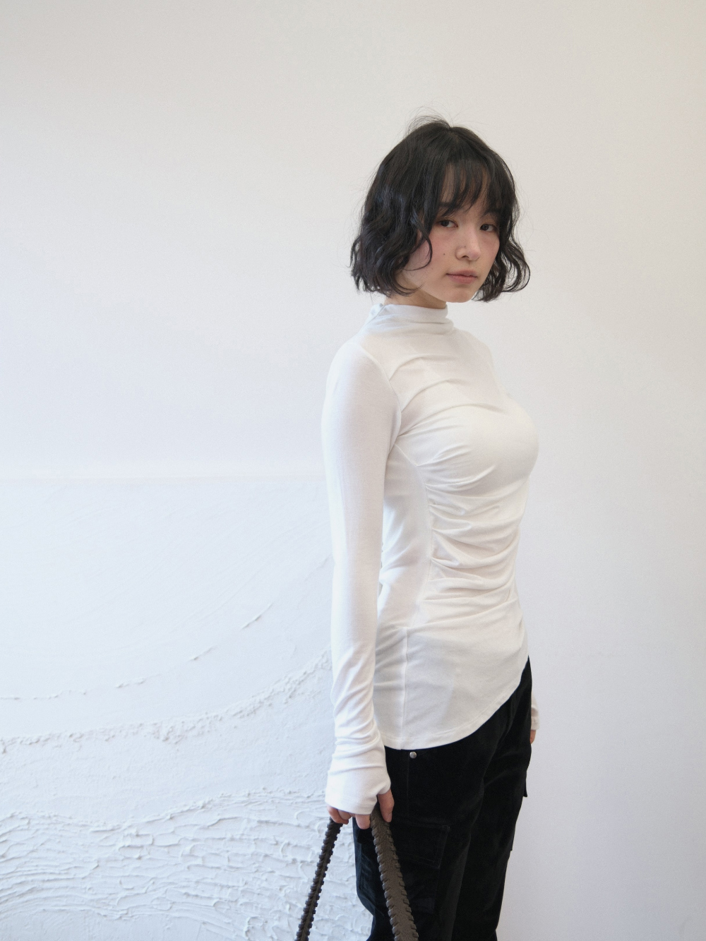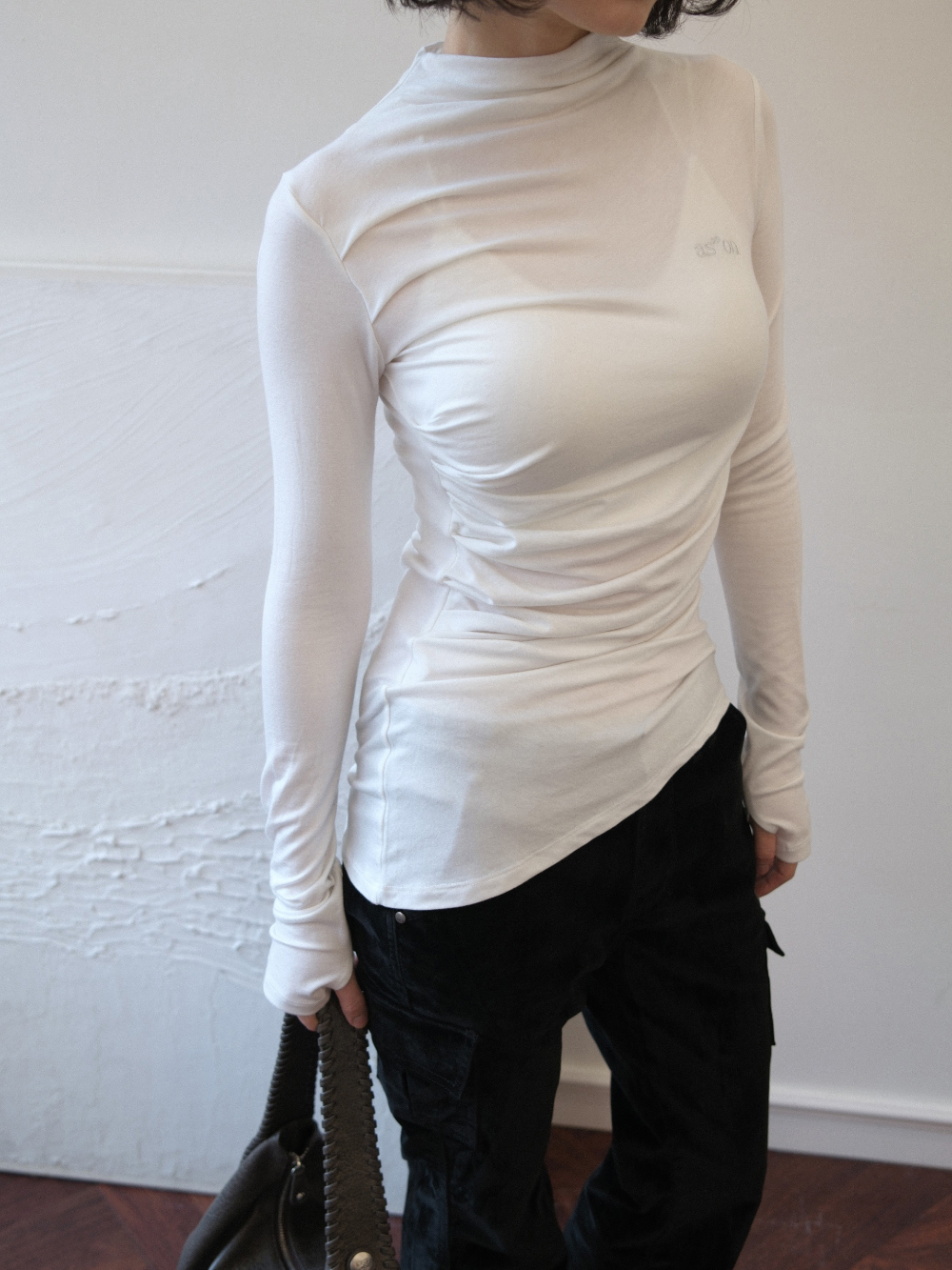 - 高領設計,下擺不規則