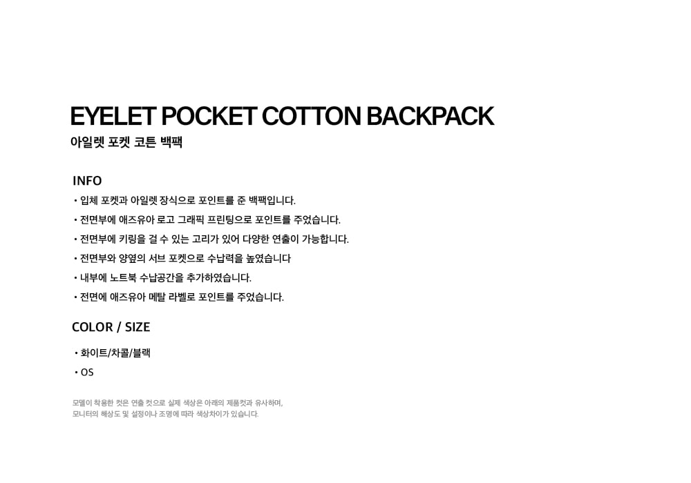 🇰🇷訂購|asur 26SS|Eyelet Pocket Cotton Backpack 3色