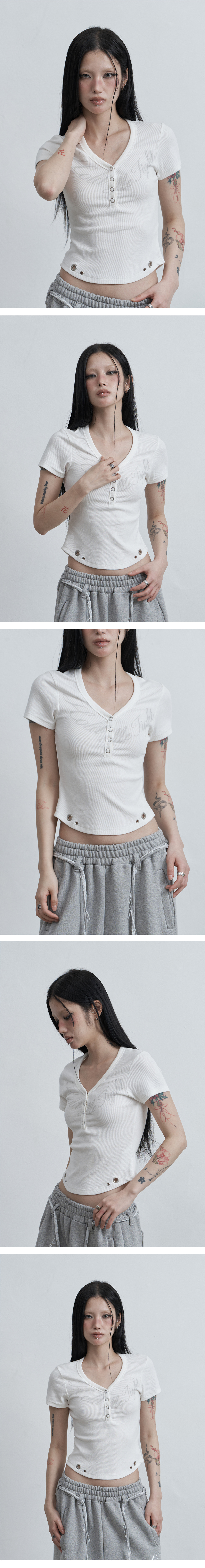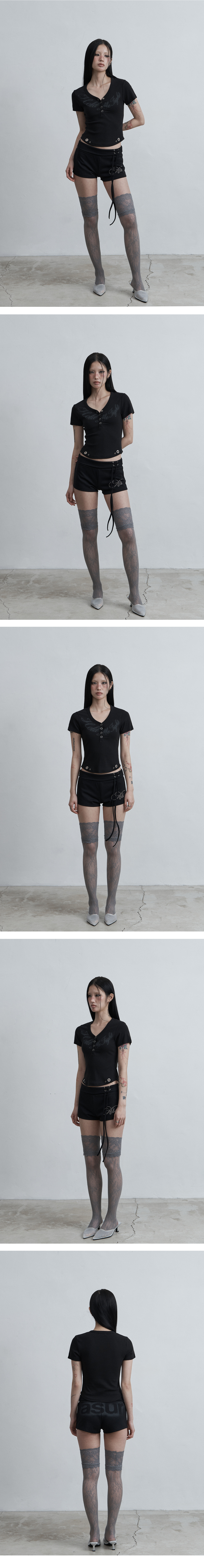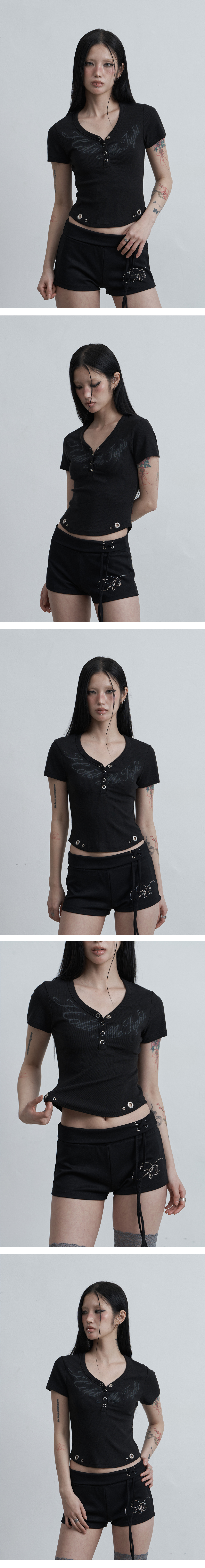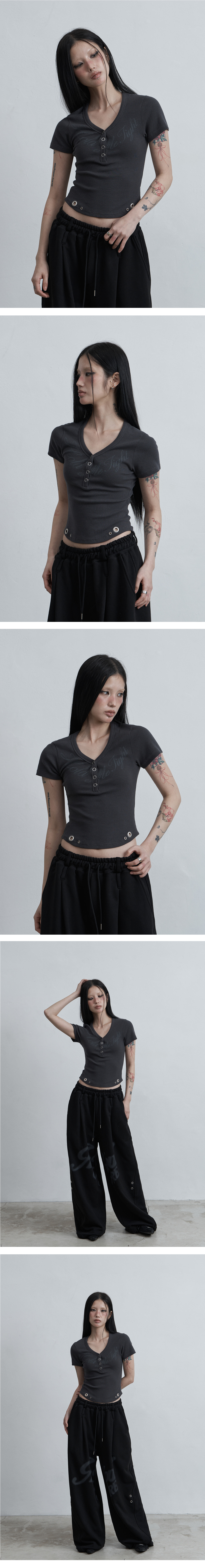 🇰🇷訂購|asur 26SS|Henry V-neck Hold T-shirt Black 3色