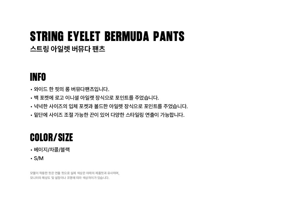 🇰🇷訂購|asur 26SS|String Eyelet Bermuda Pants 3色