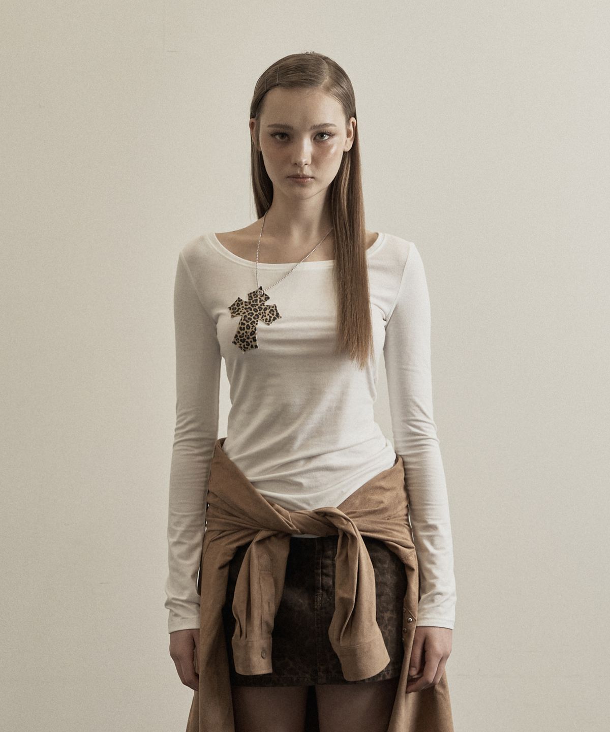 ๐ฐ๐ท่จ่ณผ๏ฝillio๏ฝleopard cross necklace top 2่ฒ