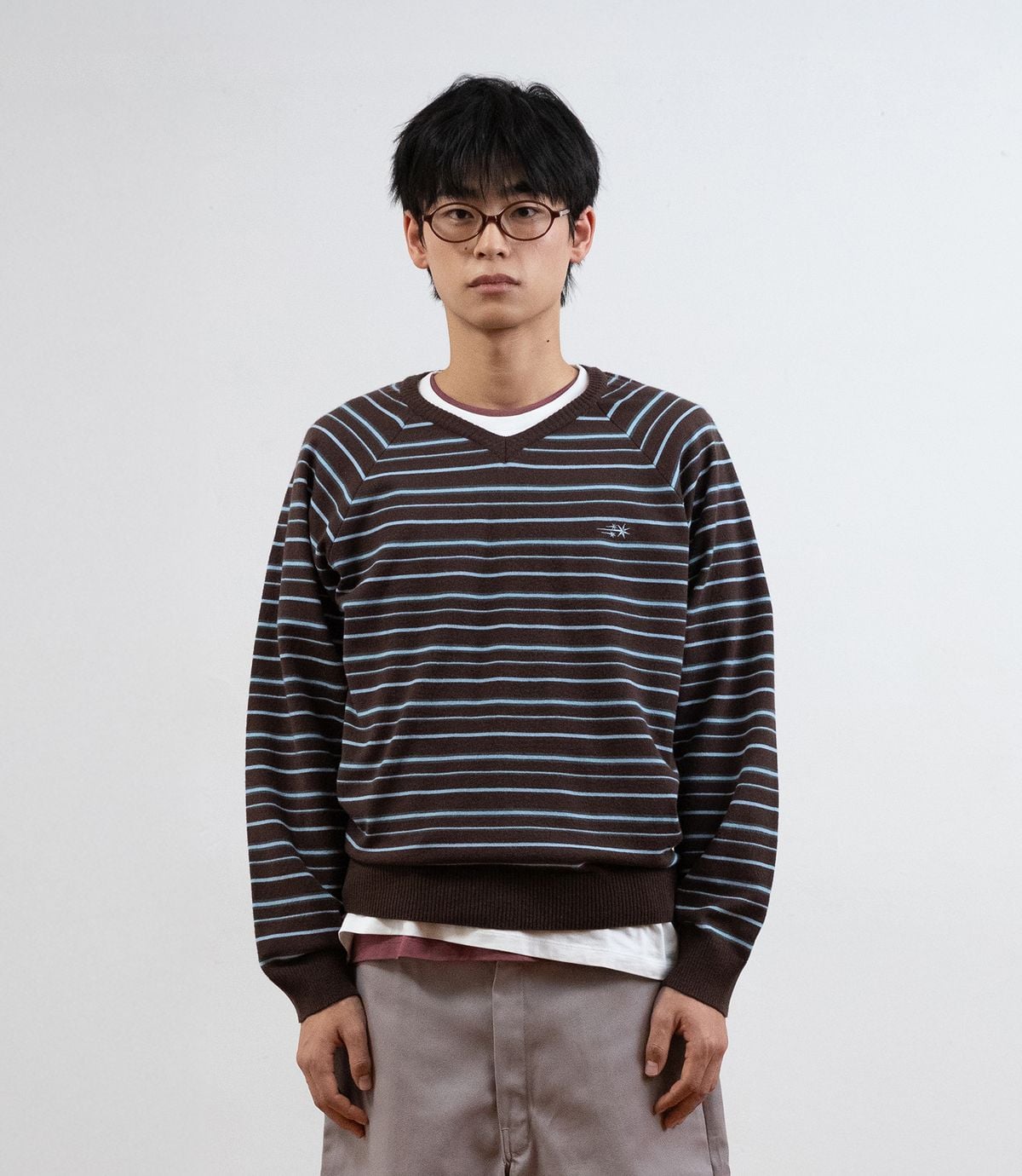 ๐ฐ๐ท่จ่ณผ๏ฝniceghostclub 26SS๏ฝMULTI STRIPE 3STAR V NECK KNIT 2่ฒ
