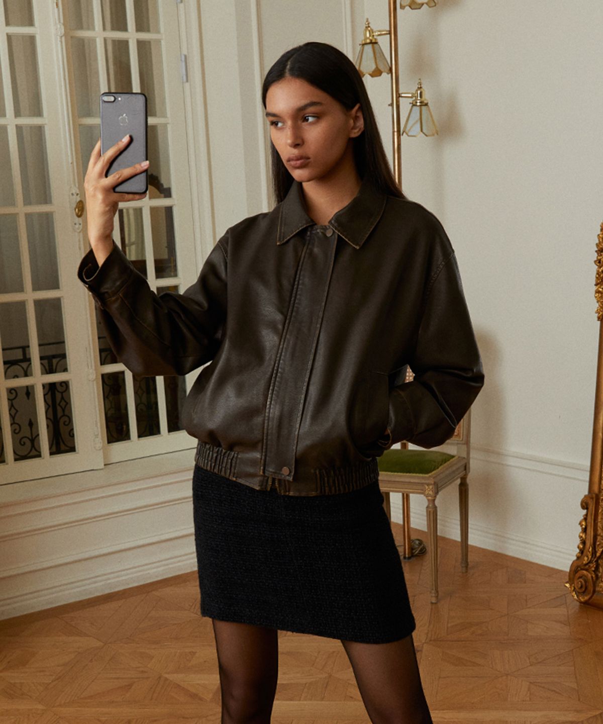 ๐ฐ๐ท๏ฝLADY VOLUME๏ฝ9160 VINTAGE COATING LEATHER JUMPER